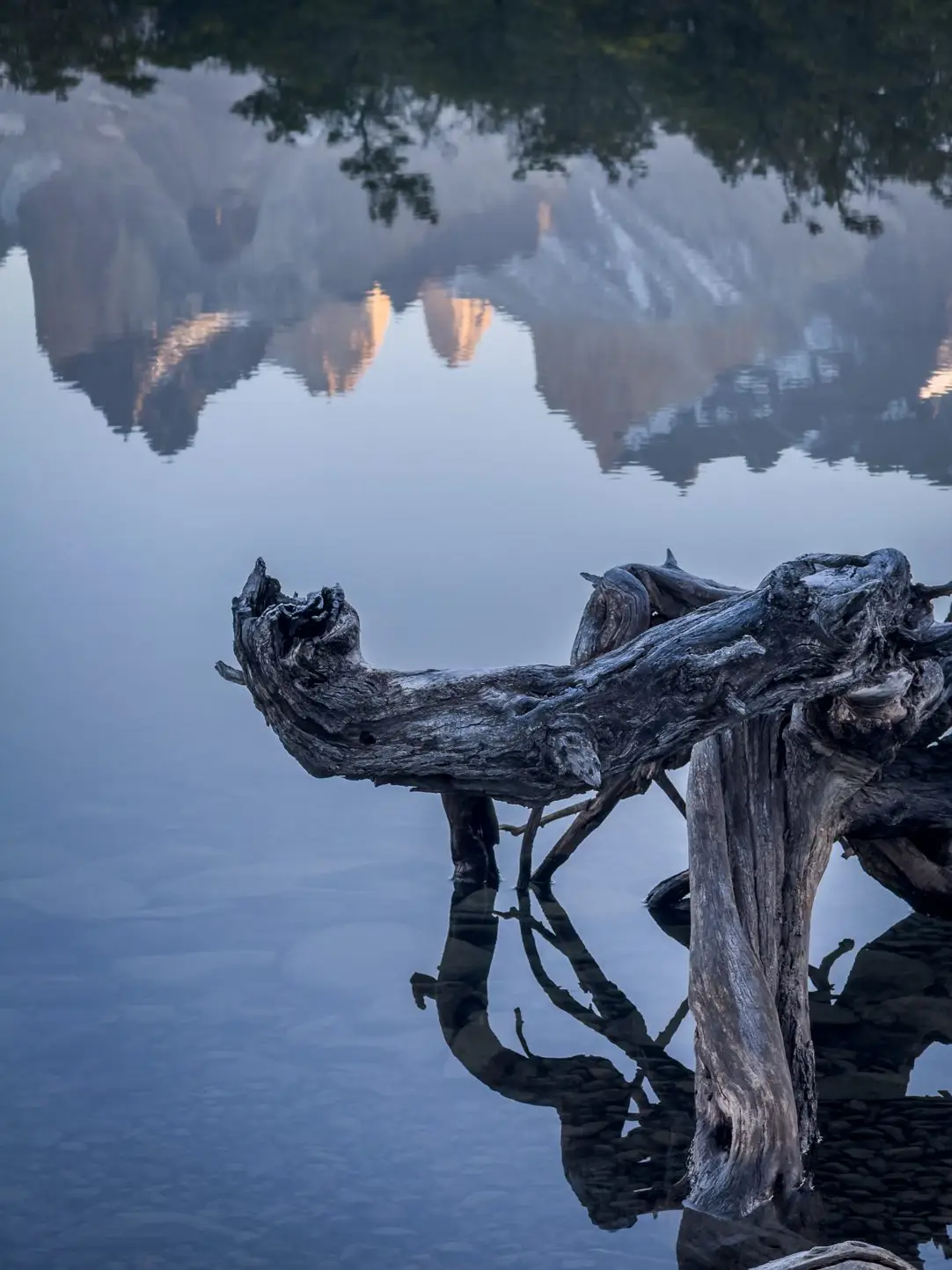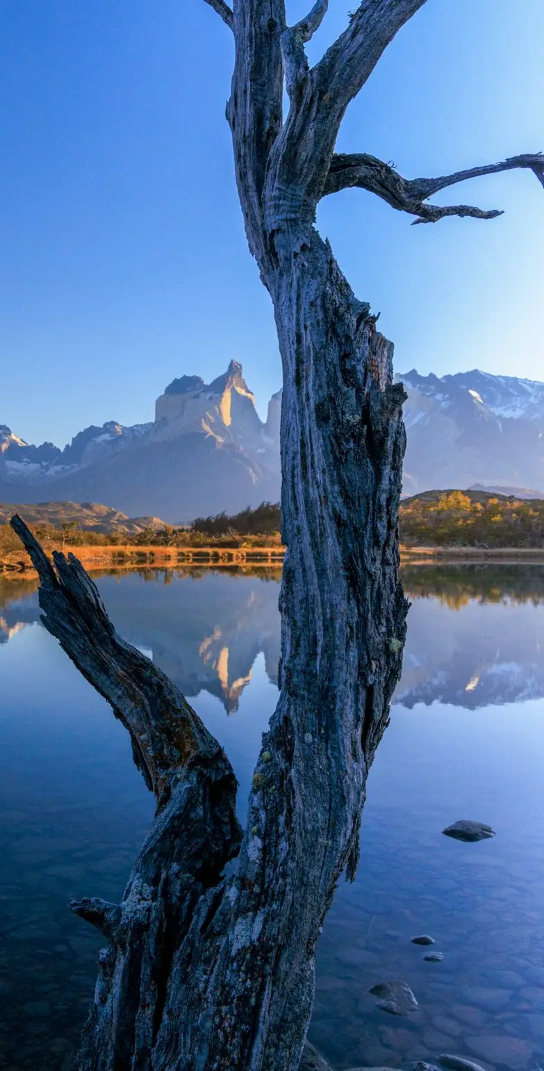 As árvores álamo em El Calafate. A madeira suspensa no Lago Pehoé, em Los Cuernos, que parece obra de arte sem autoria. Os fragmentos que encontrei na Laguna Amarga, um fragmento do glaciar à deriva, flutuando como escultura viva.